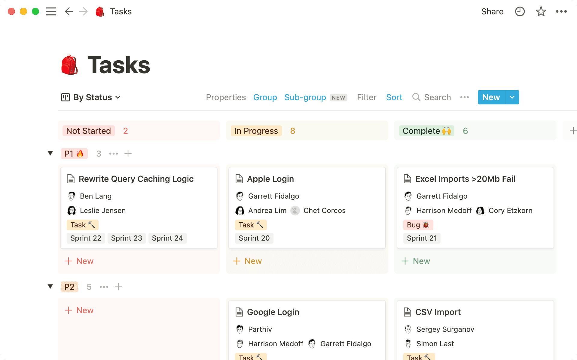 이제 할 일과 프로젝트들을 더 정교하게 시각화할 수 있습니다. 데이터베이스 보기에서 원하는 속성을 기준으로 항목들을 그룹화하고 체계적으로 정리하세요.